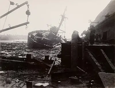 An explosion on board a freighter in port causes Texas City in the state of Texas, United States, to catch fire, killing